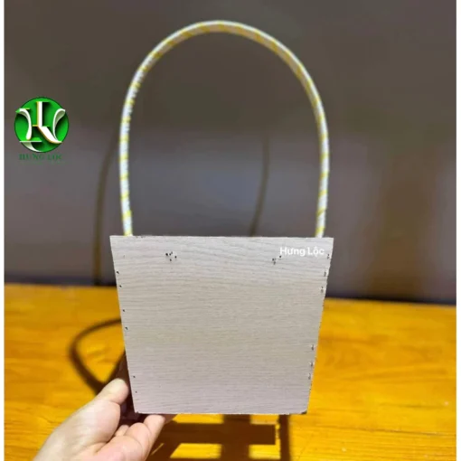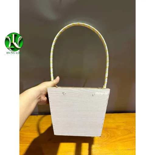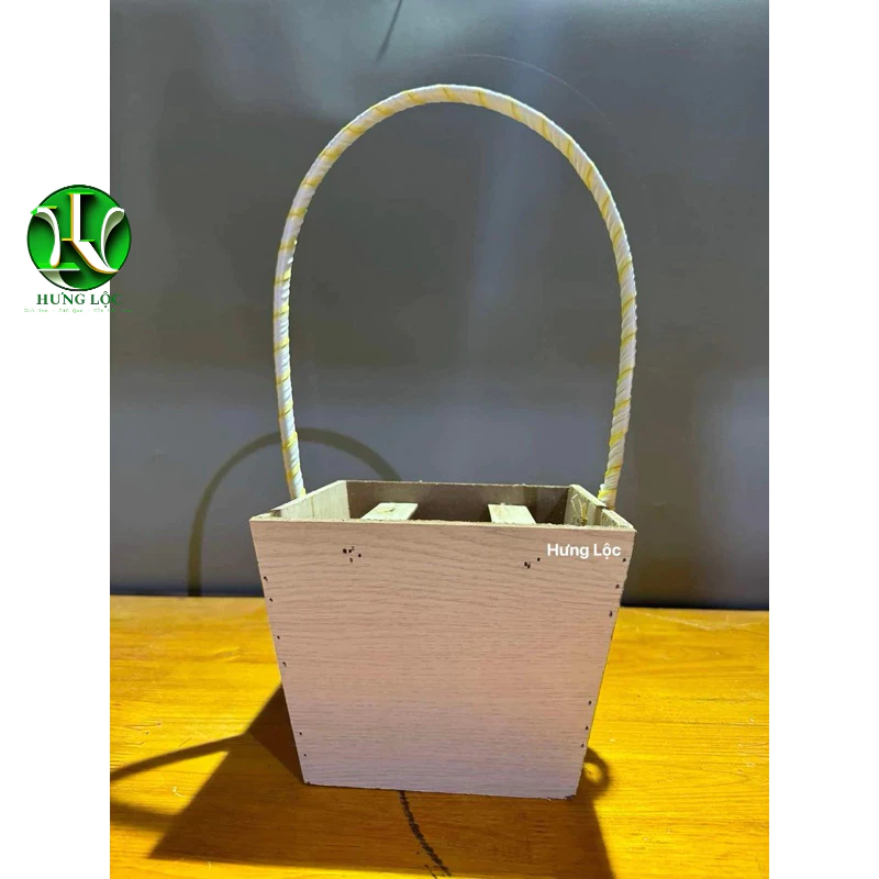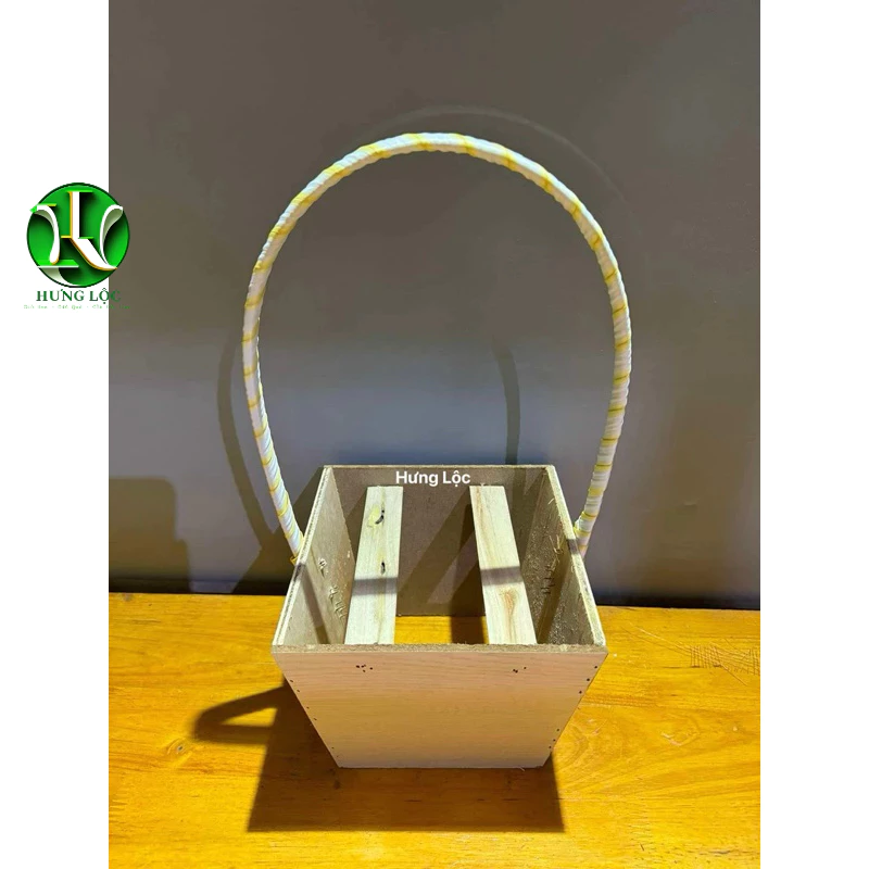 Review Giỏ cắm hoa tươi cỡ nhỏ 15cm gỗ trơn, có quai xách