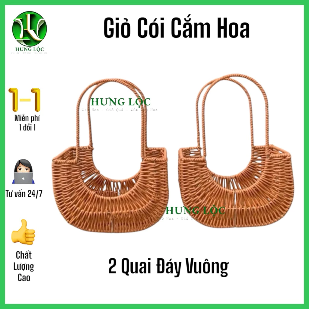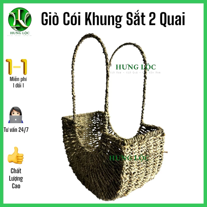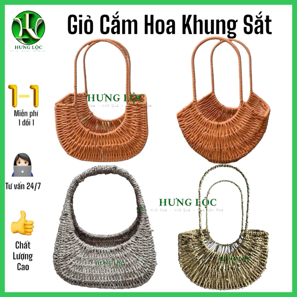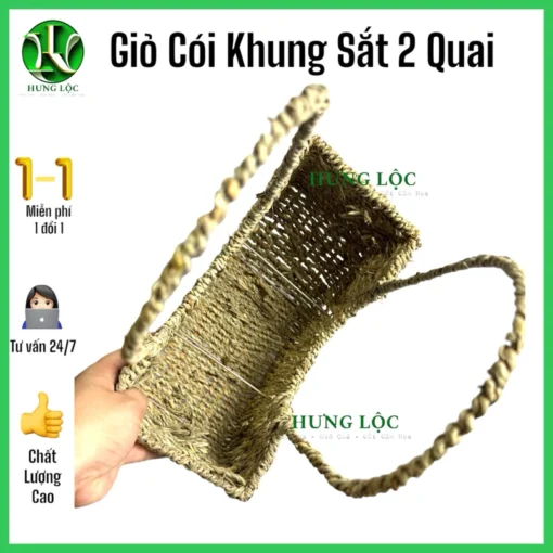 Review Giỏ Cói Cắm Hoa Khung Sắt 2 quai, 1 quai 13x28cm cao 18cm/39cm, giỏ chụp ảnh áo dài, decor nhà cửa, quà tặng
