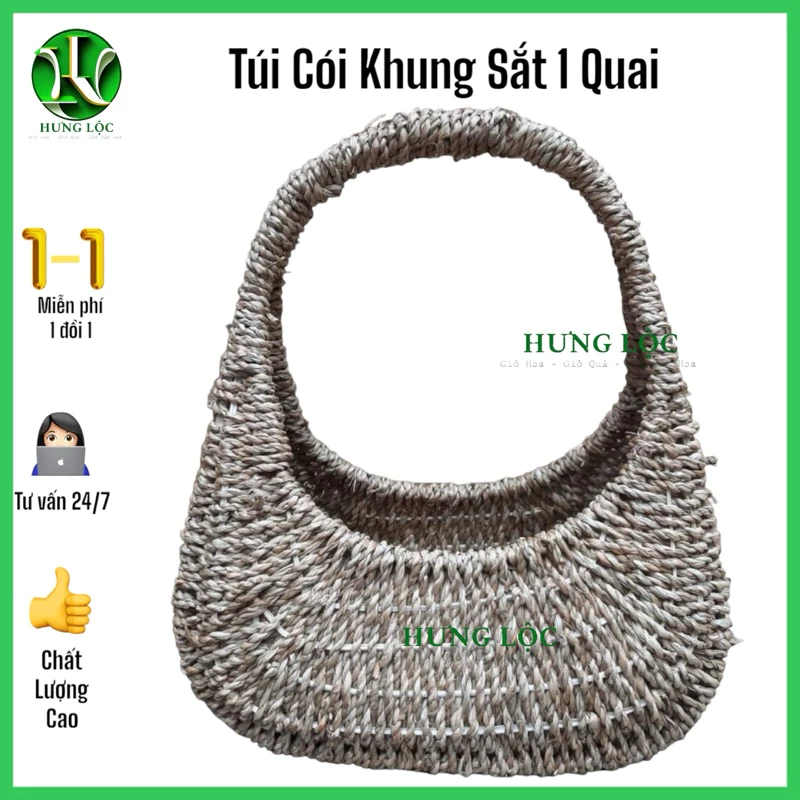 • Chất liệu thiên nhiên, thân thiện môi trường: Sợi cói bền bỉ, dễ tái chế; khung sắt chắc chắn, giữ form giỏ lâu dài.