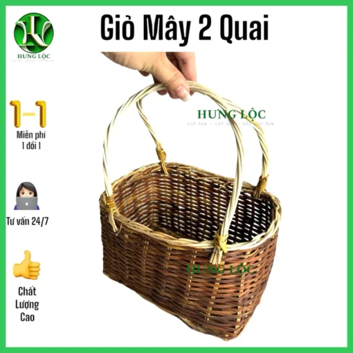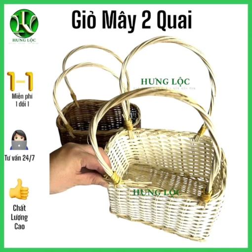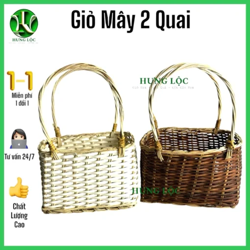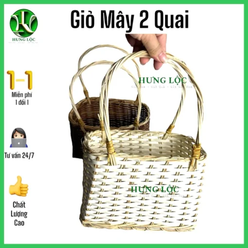 Review Giỏ Mây đan hình hộp chữ nhật 2 quai màu trắng và màu nâu 12x18cm cao 12cm/23cm