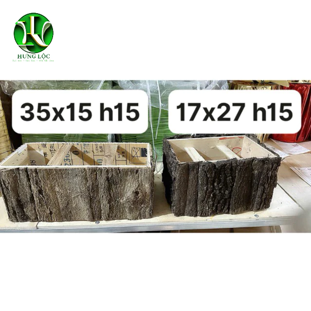 Hộp gỗ cắm hoa vỏ cây độn đế phong cách vintage độc đáo, quà tặng ý nghĩa yêu thương