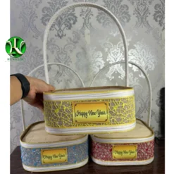 Giỏ gói quà tặng, giỏ quà tết, giỏ gói bánh kẹo hoạ tiết hoa sen vàng cao cấp màu đỏ, màu xanh,màu vàng 23x33cm h11/38cm